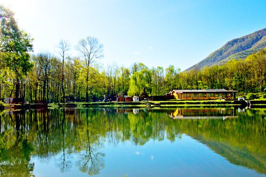 Ad arricchire la proprietà, oltre al laghetto circondato da svettanti montagne, nella tranquilla zona verde è presente un area giochi con accampamento celtico ed anche una piccola fattoria con animali, un paradiso anche per i più piccoli.